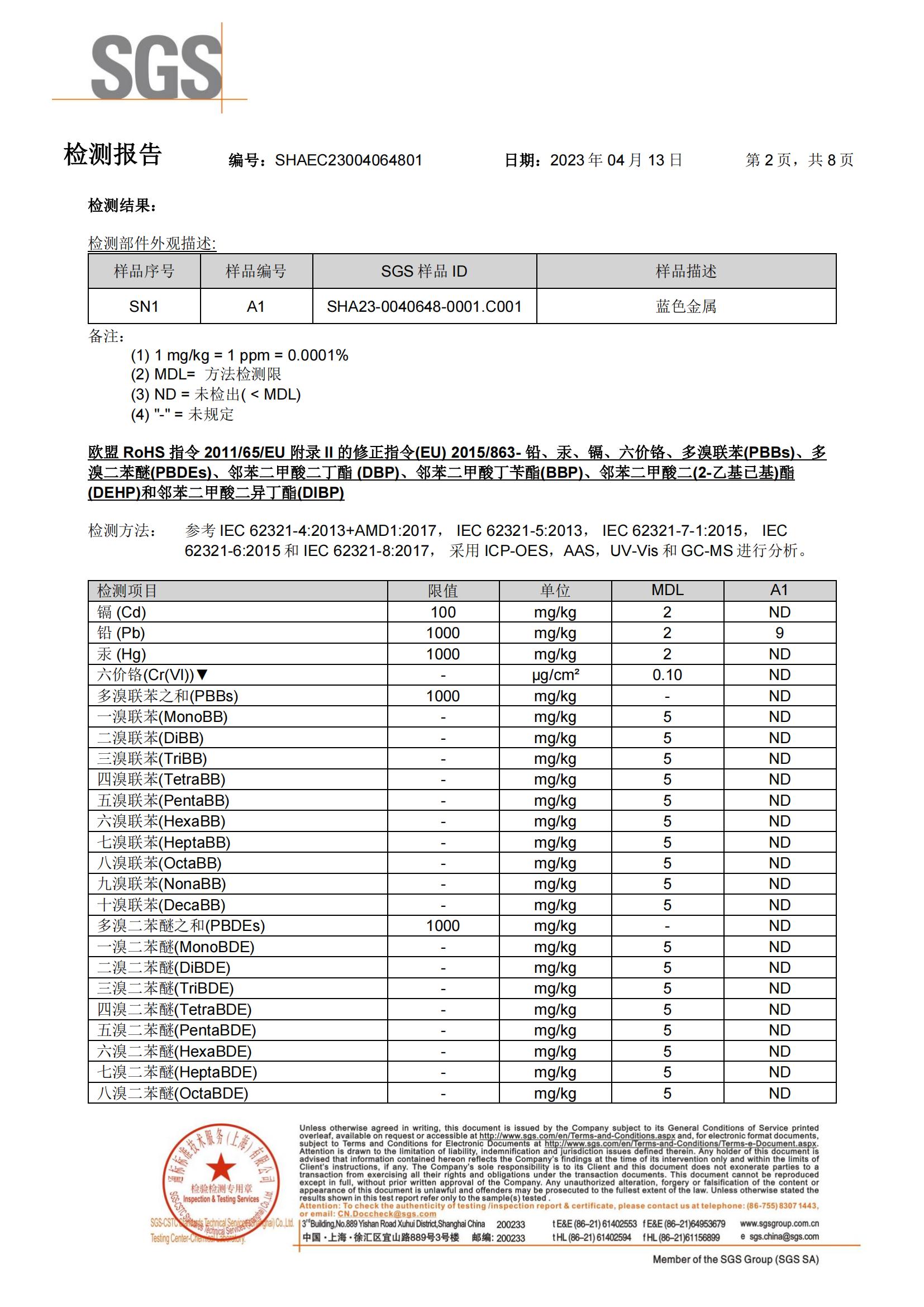 親水鋁箔環(huán)保檢測報 告